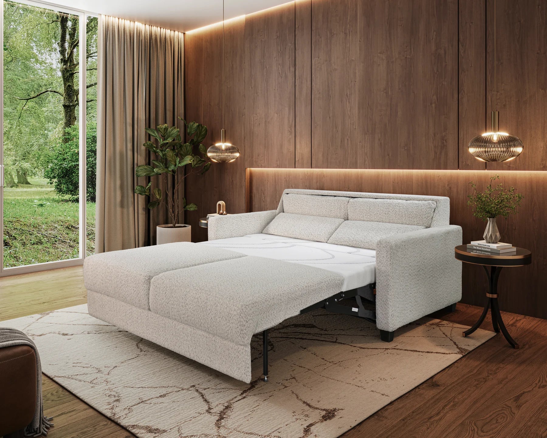 Compact in size yet generous in function, its 72-inch width makes it a smart choice for apartments, guest rooms, or living spaces where flexibility is key. The queen mattress provides true overnight comfort, making it as practical as it is stylish.